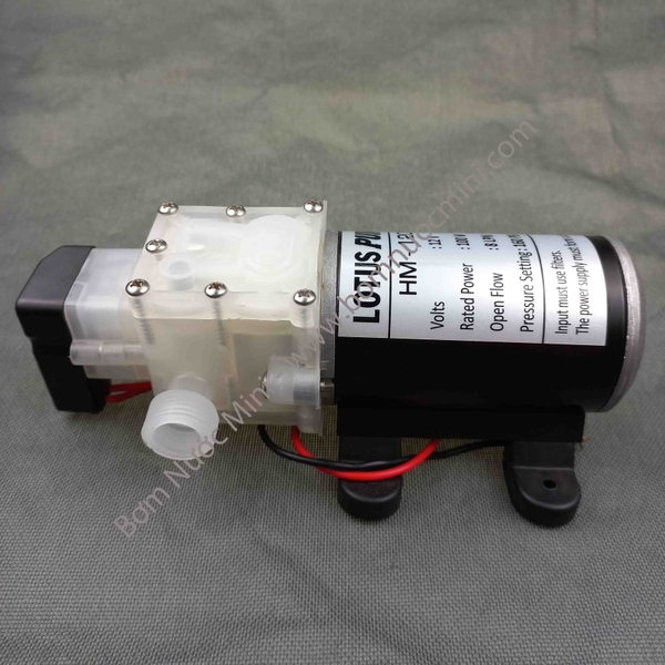 Sản phẩm Bơm Áp Lực Thực Phẩm 12V HM-1208 có động cơ nam châm vĩnh cửu ổ đĩa máy bơm áp lực cao, kích thước nhỏ, trọng lượng nhẹ, mô-men xoắn lớn, áp suất cao, hoạt động ổn định, lắp đặt dễ dàng, bơm tự mồi được xây dựng với công tắc áp suất tự động, chức năng bảo vệ quá nhiệt, tiếng ồn thấp, axit, kiềm, chống ăn mòn...