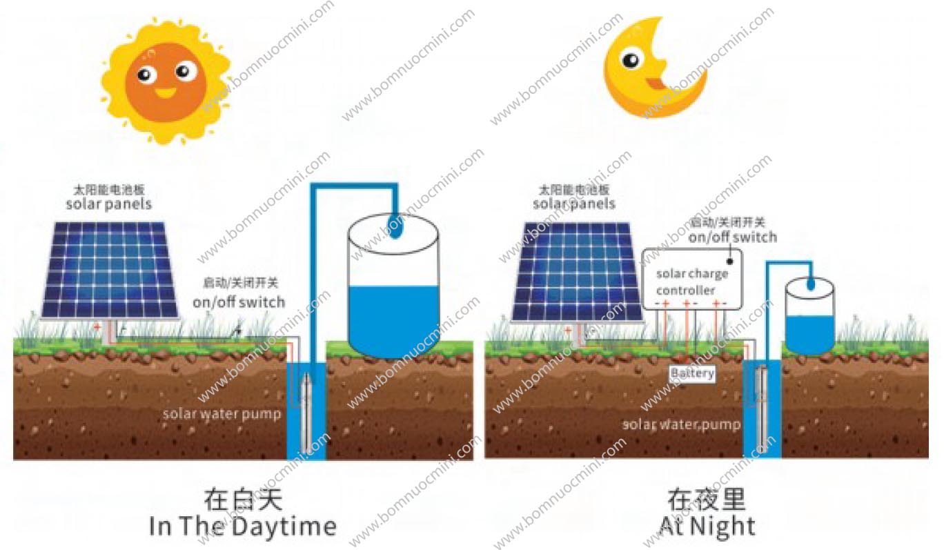 Trả lời: Loại bơm này không cần vì điều khiển đã có sẳn trong máy, chỉ cần đấu trực tiếp với pin là có thể hoạt động. Bạn sẽ cần lưu trữ nếu cần sử dụng vào ban đêm