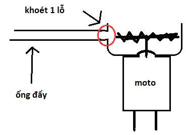 Bước 2: Sau đó đặt cái lỗ đó sao cho vừa với cái môtơ, dung keo dán lại cho chắc chắn.