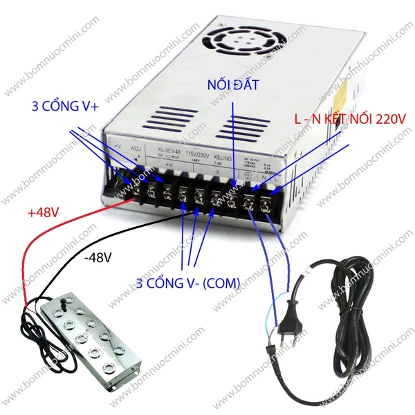 + 1 nguồn chống nước 48V 400W. Bảo hành 12 tháng đổi mới