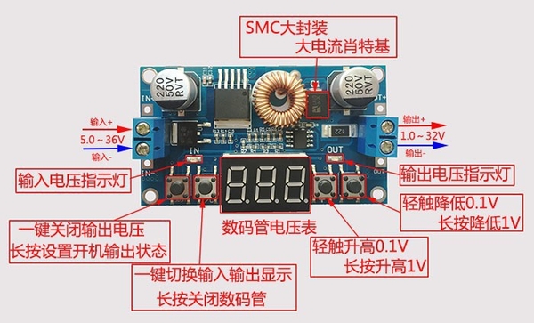 - Dải điện áp rộng: Có khả năng nhận vào điện áp từ 5V đến 36V và hạ xuống mức điện áp từ 1,2V đến 32V, đáp ứng nhu cầu điều chỉnh điện áp cho nhiều loại thiết bị và ứng dụng khác nhau.