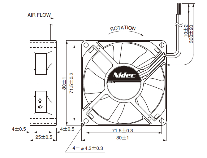 VD: Quạt tản nhiệt Nidec 120x120x38 12V 1A ,4 dây, báo dừng