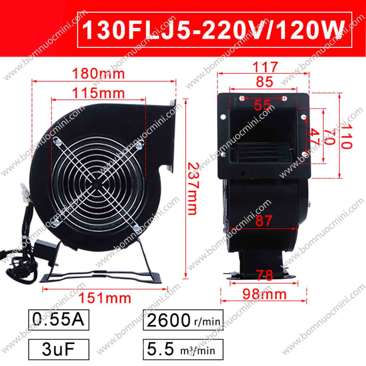 - Quạt Sò Ly Tâm 220V 130FLJ5 120W là quạt hút công nghiệp, cánh quạt và vỏ quạt được thiết kế để khi quạt vận hành sẽ tạo ra luồng không khí vuông góc với trục quạt.