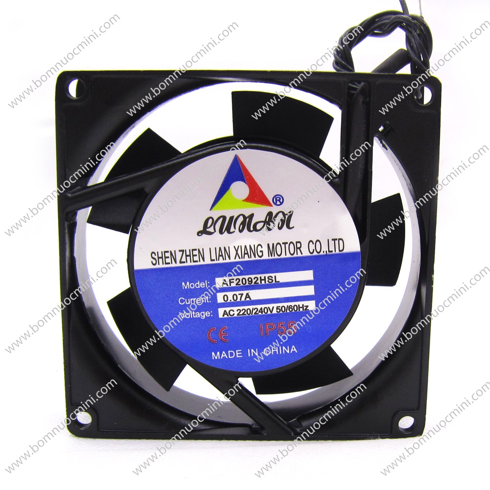 Quạt Tản Nhiệt LUNAN 92x92x25 220V có dạng hình vuông dùng để tạo gió làm mát và tản nhiệt cho các thiết bị điện tử